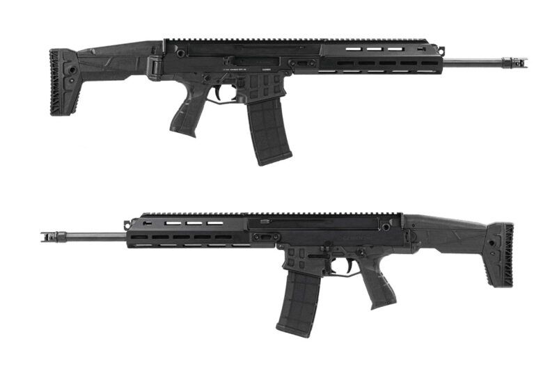 The CZ BREN 2 Ms Carbine (MSRP: $2,109) is chambered in 5.56 NATO and is equipped with mechanical sights, 16.5-inch barrel and a folding adjustable stock with a raised comb, non-reciprocating, swappable charging handle, ambidextrous AR-15 style safety and mag release, interchangeable barrel lengths and chamberings and no buffer tube. It uses AR-15 style magazines. Overall length is 28.3 to 38.5 inches and weight is 7.3 pounds.