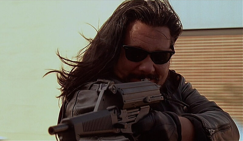 After injuries ended his NFL career, Brian Bosworth moved into acting, making his debut in Stone Cold. In it, he plays a cop who goes undercover with a motorcycle gang. His acting was panned and it didn’t do very well at the box office. This is despite some supporting roles going to some pretty decent actors, one of which, William Forsythe, carried a Calico M950 in the movie.