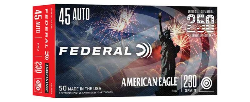 Federal’s special-edition American Eagle handgun load celebrates one of the most iconic calibers in American firearms history. Used for decades by target shooters and service members alike, the 45 Auto remains a cornerstone of American marksmanship. The commemorative box design integrates the 250th emblem and patriotic visuals, reflecting Federal’s ongoing commitment to quality manufacturing and national pride.