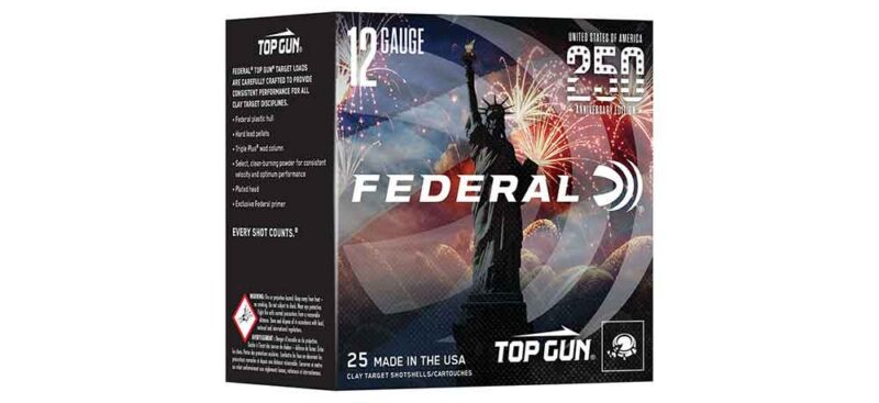 Part of the Top Gun target series, this commemorative 12-gauge load is crafted for consistent patterns and reliability on clay targets. The limited-edition packaging features unique artwork celebrating the nation’s historic milestone and the American tradition of recreational shooting sports.