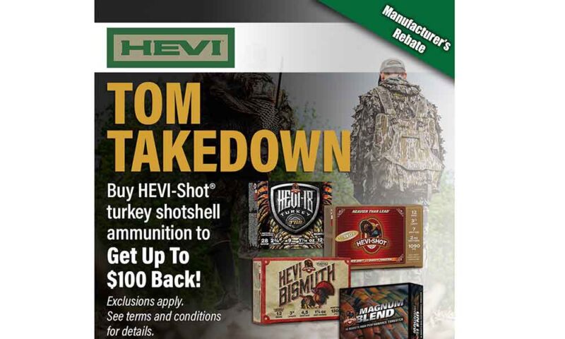 HEVI recently announced its Tom Takedown rebate program. This is where diehard wild turkey hunters can get up to $100 back after buying some HEVI turkey loads. The promotion runs through May 31, 2026.