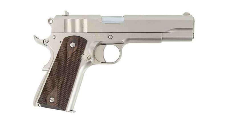 The 1911 A1 Stakeout features a 4140 hammer-forged-steel, electroless-nickel-finish slide and frame, making the Stakeout a firearm that will turn heads at the range. The nickel-finished aluminum trigger and walnut grip complete the look, and the 5-inch forged barrel will provide years of flawless shooting.