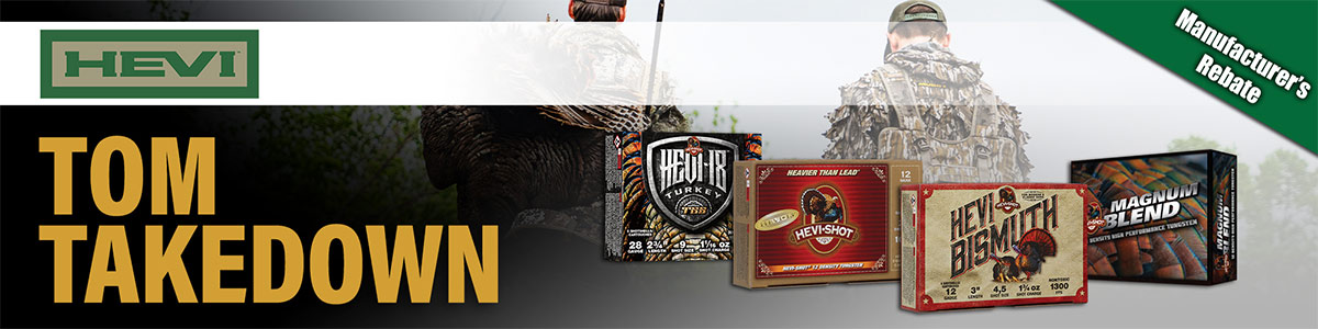 qualifying* HEVI-Shot® turkey shotshell ammunition** to get a rebate of up to $100.00 back. Taxes, fees, and/or shipping and handling fees are not included in the eligible rebate amount.