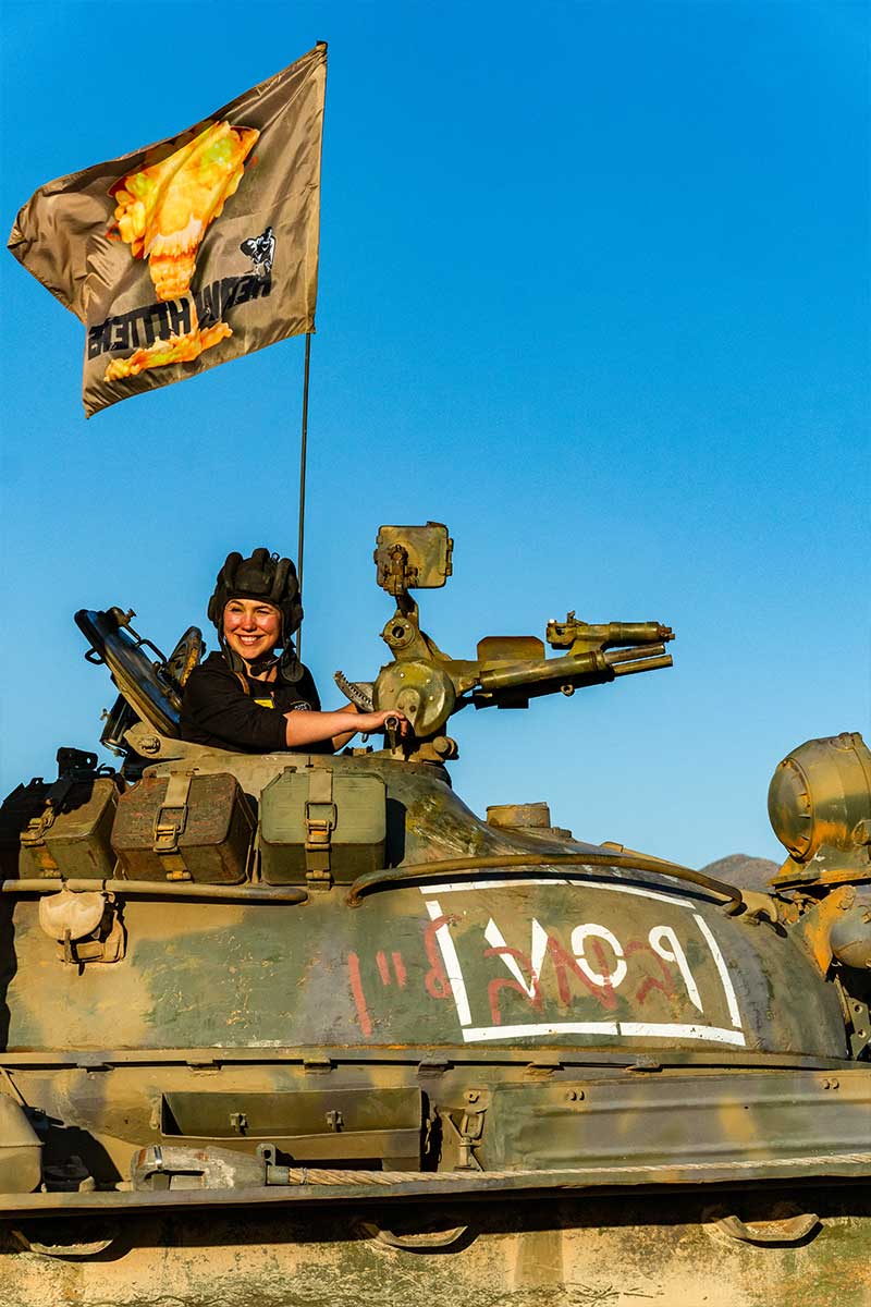 Yuri, a T-62 Tank, is a combat certified pedigree, Syrian Army T- 62. This is a Soviet design main battle tank from use of the Syrian army. This tank was featured in the Yom Kippur War in 1973 and it went on to go into the Lebanese conflict in 1982, again with Syria, at that point the Israelis captured this tank and then the tank made its way into private hands through various collectors. The tank is absolutely riddled with battle damage.